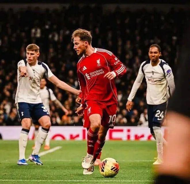 哈维·西蒙斯在上半场就被罚下了,利物浦面对少一人的热刺却根本没有把优势踢出来,前场进攻时有个画面是在热刺禁区左侧,足足有6名利物浦球员,却找不到传球的空间,与其压着对方在禁区内,不如放出来温水煮青蛙,但斯洛特似乎根本没有get到要点,还是继续在前场进行无效控球,不过中距离的贴地传球多了很多,但是根本达不到撕扯对方防线的作用。